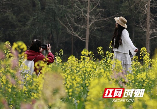 红网时刻新闻3月5日张家界讯(通讯员 吴勇兵)3月5日,张家界市武陵源区黄龙洞景区油菜花田间踏春游玩。时至惊蛰,湖南张家界市武陵源区黄龙洞景区,成片的油菜花竞相绽放,春意渐浓,吸引人们踏青游玩,感受春暖花开的美好。