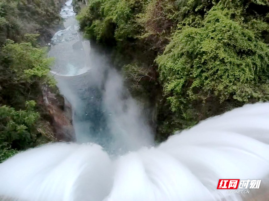 4月17日,张家界市永定区仙人溪迎来丰水期,水量充盈奔涌,瀑布尽显磅礴气势。飞瀑自水库倾泻而下、凌空奔落,水雾氤氲缭绕于青山幽谷之间;碧水澄澈如镜,两岸峰林错落叠翠、相映成趣,动静交融间勾勒出一幅灵动秀美的山水画卷。