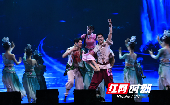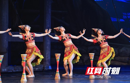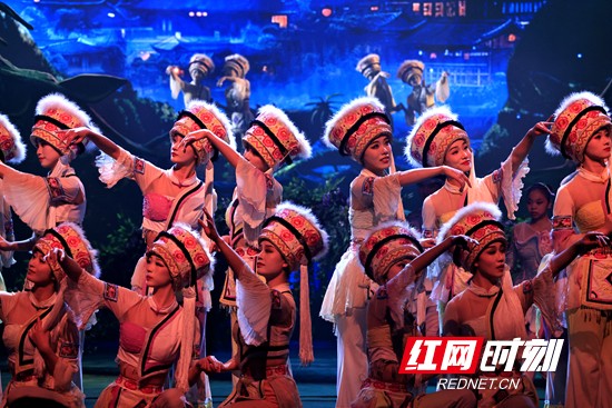 红网时刻新闻4月2日张家界讯(通讯员 吴勇兵)清明假期临近,张家界市武陵源区魅力湘西景区灯火灿烂、座无虚席,各地游客纷至沓来观看民俗节目演出。据魅力湘西艺术团负责人介绍,随着武陵源旅游旺季的来临,《魅力湘西》也进入演出旺季,目前每天常态化演出两场,清明假期视情增加演出场次。今年以来,魅力湘西艺术团再次对节目舞美编排、灯光音效等进行提质优化,给观众带来全新的视听体验,推动张家界旅游消费延展升级。图为4月1日晚,魅力湘西艺术团演员在进行节目表演。