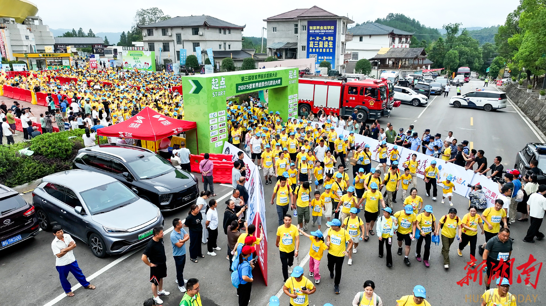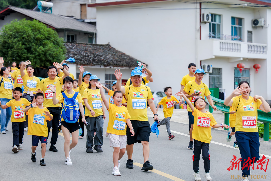9时58分,主办方鸣枪开赛。来自长沙、张家界、常德等地的近1500组亲子家庭、3000余名参赛者身着运动衫,从茶马古道遗址出发,以徒步方式感受峡谷奇观,欣赏乡村美景。比赛途中,两个补给站化身“加油站”,特色美食、饮料为参赛健将续航。赛道中,家长和孩子们相互鼓励,孩子们之间相互加油,成为沿途最动人的风景。