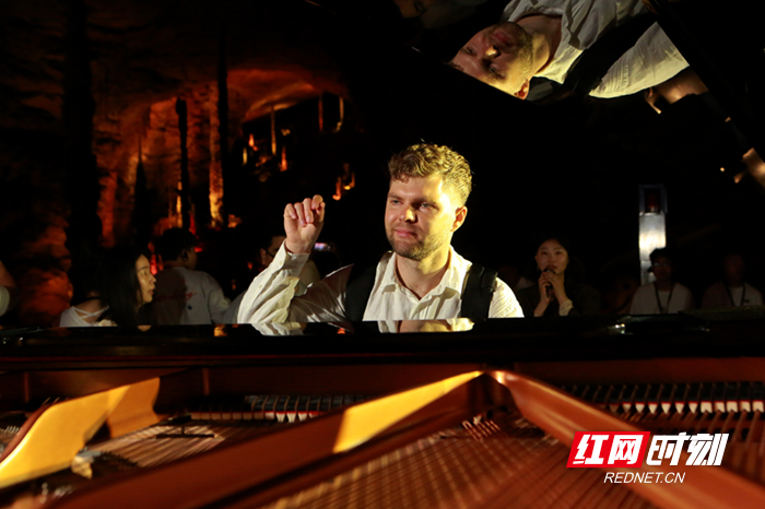 这种“外国钢琴家+中外经典名曲+古老神话传说+亿万年的溶洞奇观+现代光影科技”的反差组合,为现场观众带来了一场前所未有的视听震撼,大家纷纷沉浸在这场跨越国界与时空的艺术盛宴中。