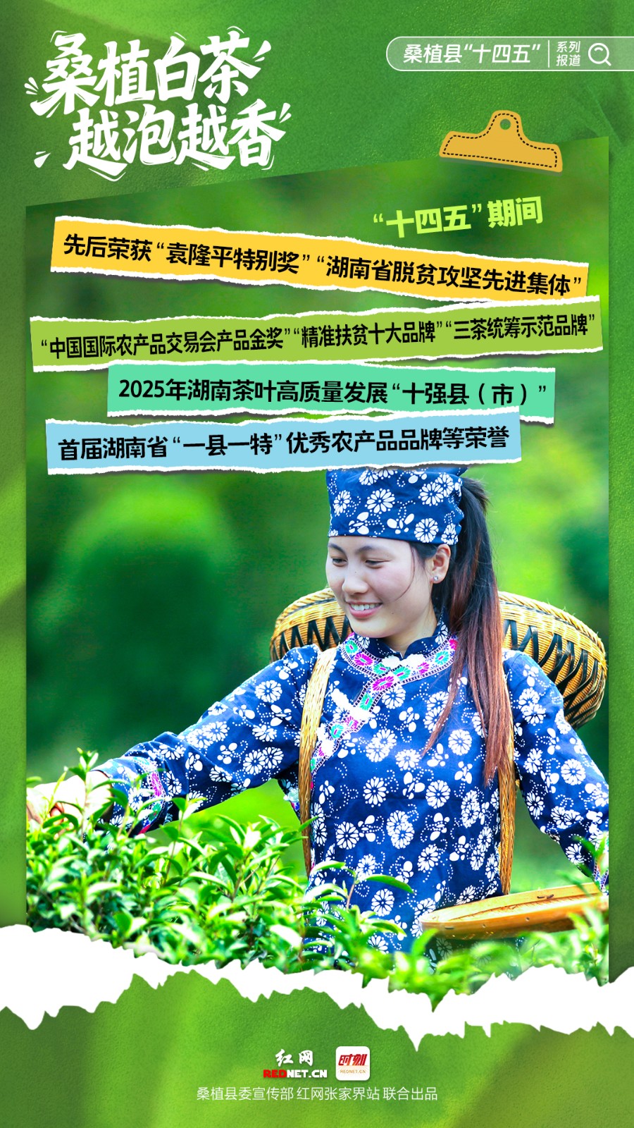 编者按:“十四五”期间,桑植县锚定“一主多特”发展定位,将桑植白茶列为首位主导产业,以政策赋能强基、科技支撑提质、品牌引领增效,聚力推进全产业链升级,构建形成“一园一带一片”产业布局,实现产业发展从规模扩张到质量提升、从单产发展到三产融合的历史性转变。截至2025年底,桑植白茶“百亿产业”建设扎实推进,成为撬动全县乡村振兴、壮大县域经济的关键支撑。
