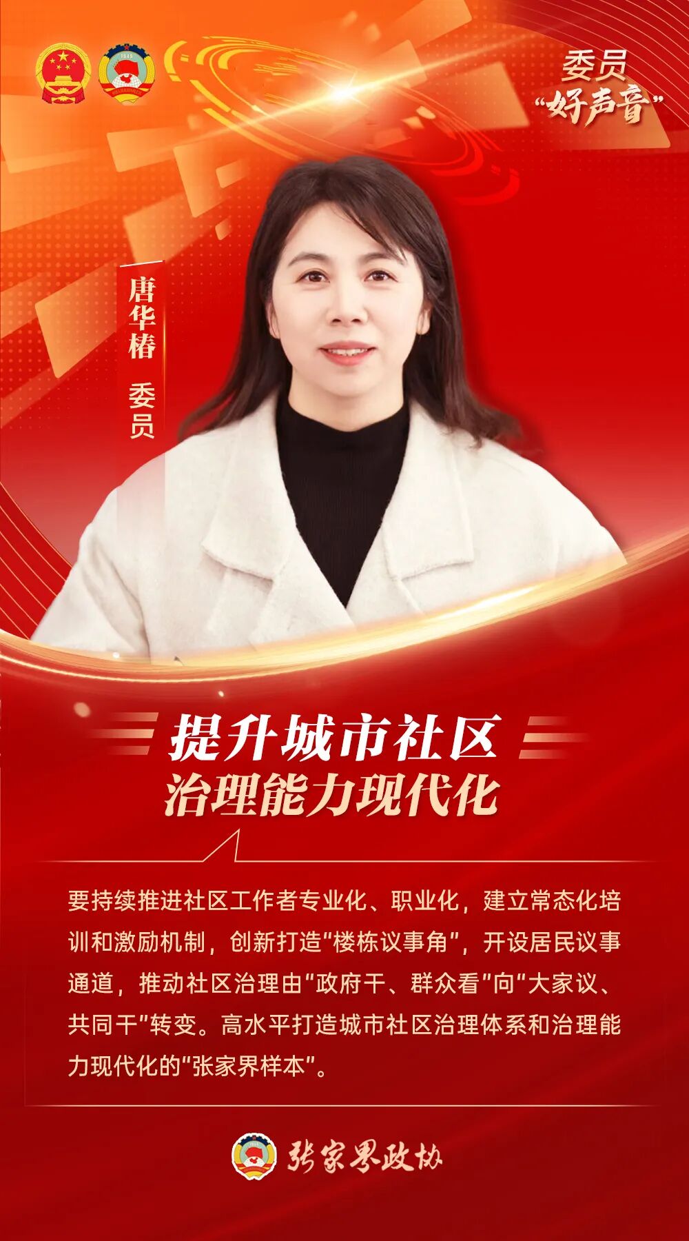 12月25日上午,政协张家界市第八届委员会第五次会议在市委礼堂举行。会上,七位委员作了口头发言。他们通过深入调研、集思广益,分别从大张家界国际旅游区建设、打造国家级红色旅游融合发展区、建设“口袋公园”、提升张家界国际航空口岸竞争力、繁荣年节文化、提升城市社区治理能力现代化和构建关爱中小学生心理健康体系等方面积极建言献策。编辑对七位委员的发言汇报材料进行核心摘录,以飨读者。