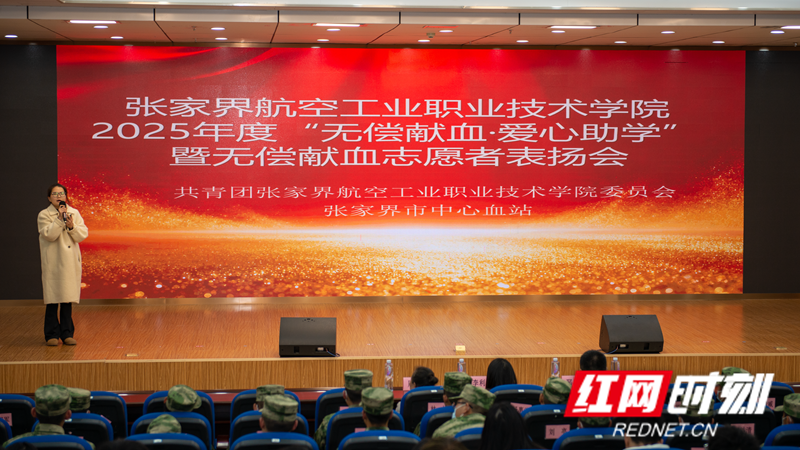 红网时刻新闻12月9日讯(通讯员 龚卓 王玲)12月9日,张家界市2025年“无偿献血·爱心助学”资助活动颁发仪式暨表扬大会在张家界航空工业职业技术学院举行。活动以无偿献血公益事业为纽带,聚焦青年学子成长,通过表扬先进、发放助学金,凝聚青春力量,弘扬奉献精神,为全市无偿献血事业注入生机。